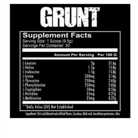 EAA stands for essential amino acids – this means you canʼt live without them. They do all of the heavy lifting in regard to muscle repair and recovery. With the essential amino acids found in Grunt® you can now leave the heavy lifting of muscle repair and recovery support to us.