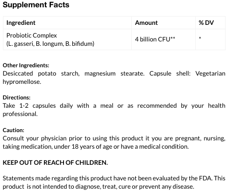 Probiotic Complex (L. gasseri, B. longum, B. bifidum) |